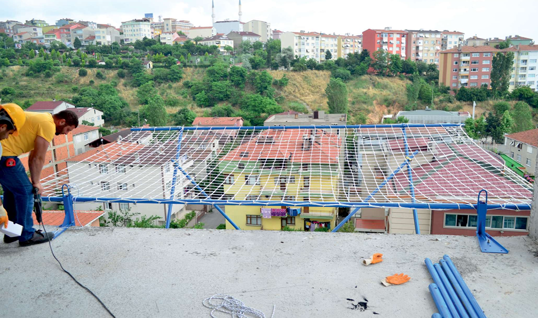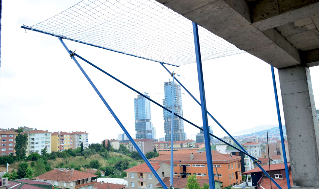 SAFENET çalışma yapılan katın iki veya üç alt seviyesine kurularak yukarıdan düşebilecek personel ve malzemeleri güvenli şekilde yakalamak amacıyla geliştirilmiştir. Hem üst kotta hem de alt seviyede çalışanların korunmasını sağlar. Sistem, çelik taşıyıcı profiller arasına gerilen 100×100 mm göz ölçüsünde ana güvenlik ağı ve üzerine uygulanan güvenlik filesinden oluşur. TS EN 1263 standartlarına uygun olarak üretilir, cepheden maksimum 3 m çıkma mesafesine sahiptir, 300, 400 ve 600 cm standart genişliklerde sunulur ve vinç ile taşınarak monte edilir. Montaj sırasında konsollar minimum 75 cm bindirmeli uygulanır ve sistem, şantiye koşullarında yüksek dayanım ve güvenli çalışma ortamı sağlayacak şekilde tasarlanmıştır.